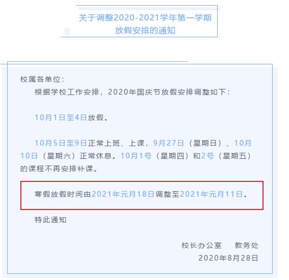 今年国庆节前,多所高校已发布通知,宣布国庆假期缩短,并提前或延长寒假。
